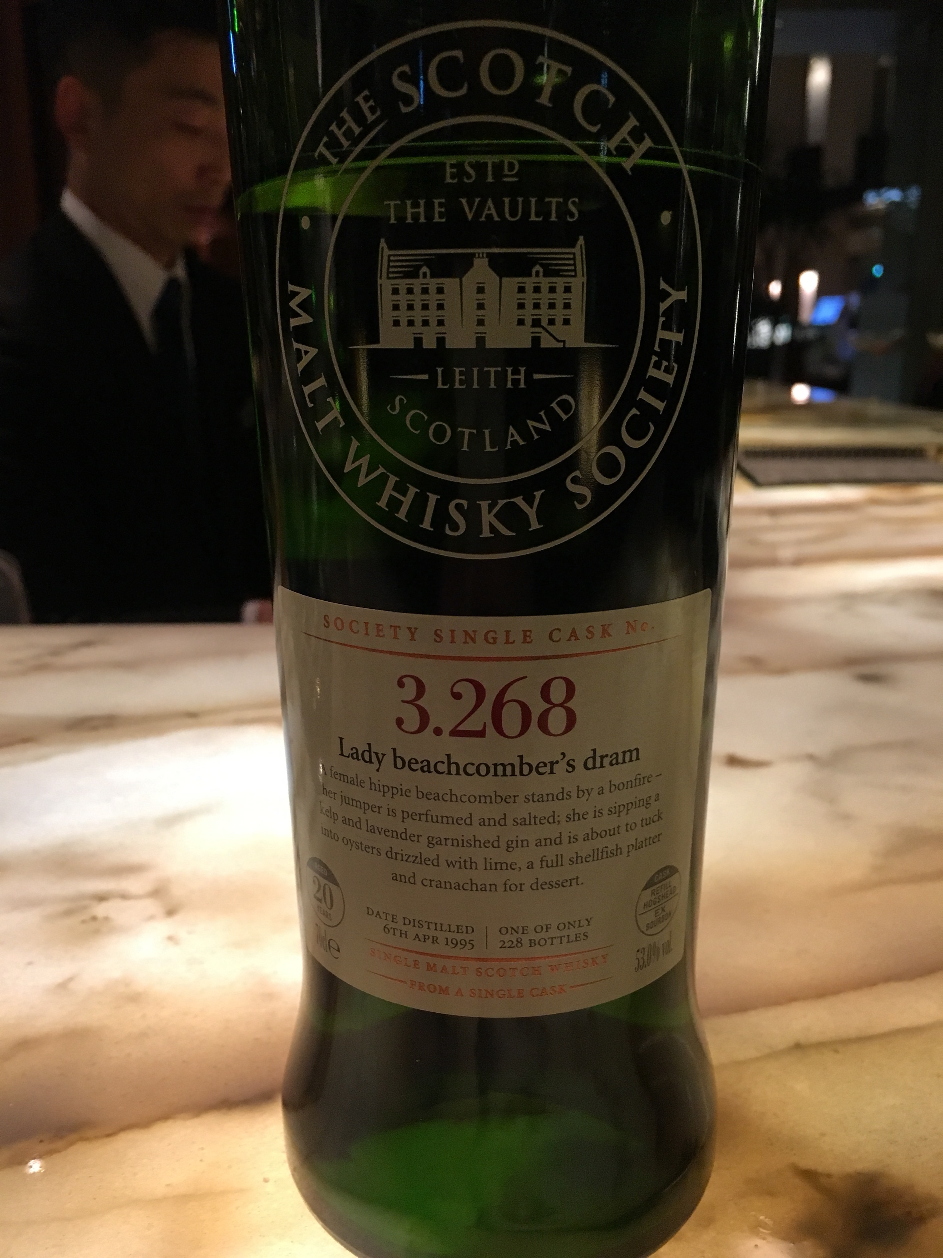 Palate is intensely floral, salty, peachy, tropical fruit, slight licks of smoke